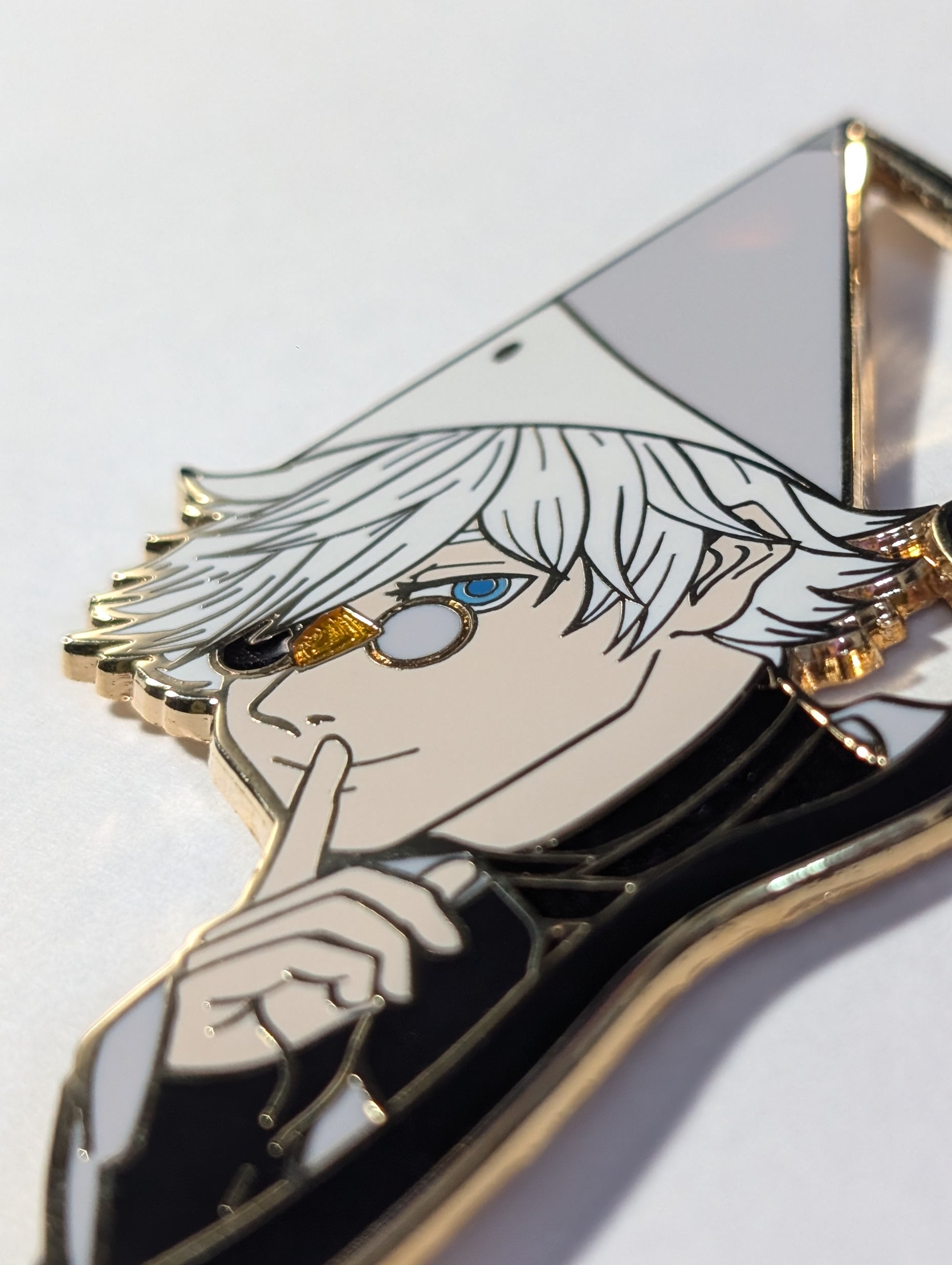 This meticulously crafted pin features sandblast details that bring out the texture of his leather outfit and glasses, adding a touch of realism to his distinguished look. A must-have for any collection, this pin is as charming as the sensei himself.